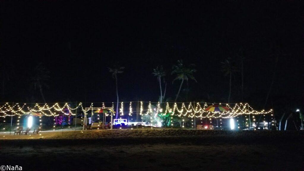 昨日の夕食は私が海水浴をしたビーチが簡易的な野外レストランにかわっていて、そこに行った。