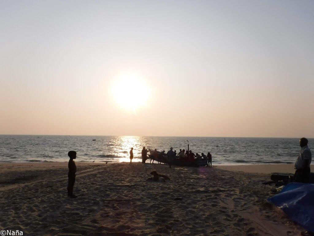 船が出航したあとは、笑顔で汗だくの男たちがビーチから帰っていった。魚を獲るための船らしい。