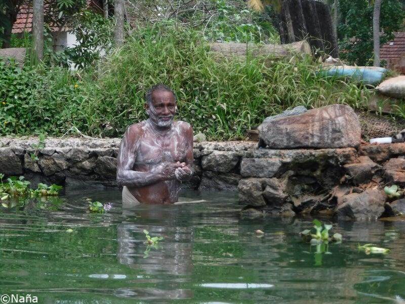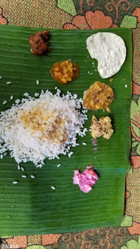 お昼ご飯は14:30頃。朝ご飯を食べたところに戻りまたケララの家庭料理を食べる。
