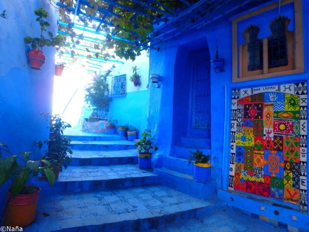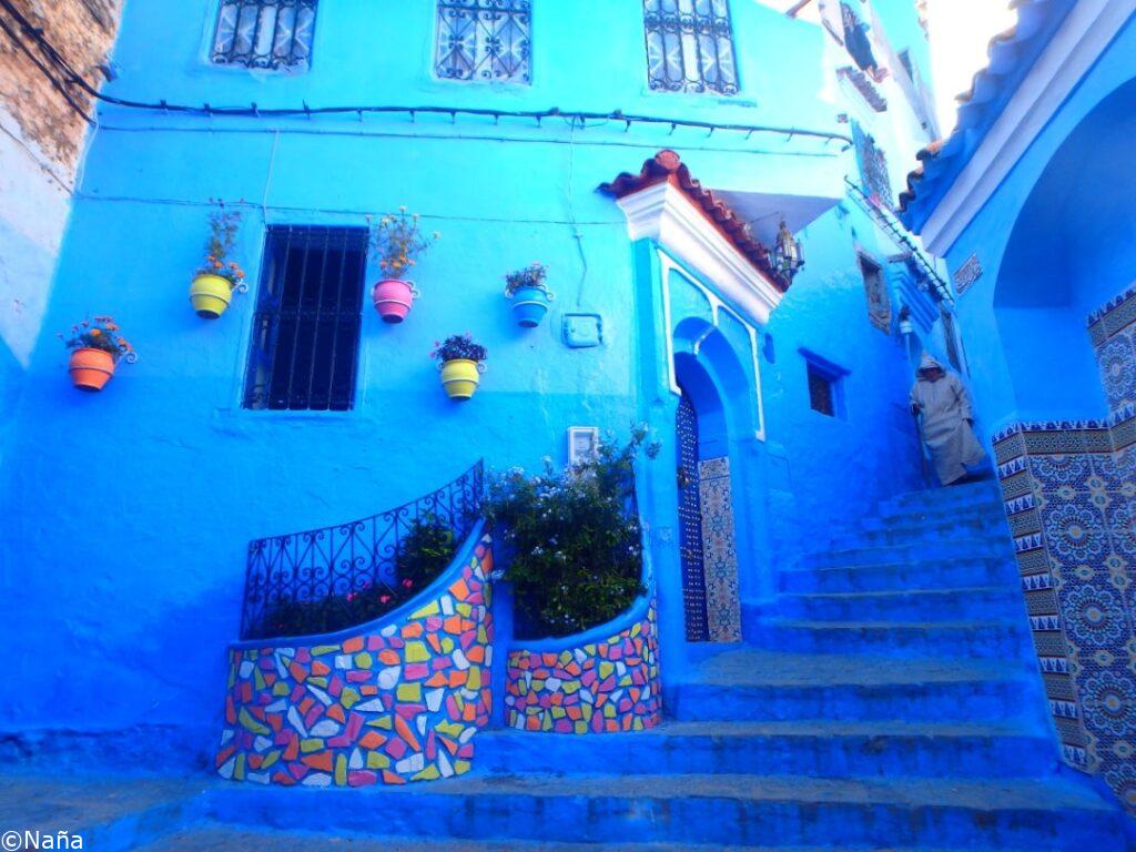 シャウエンの街が近づいてきた。遠くに見える青い街。
