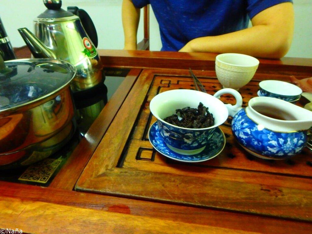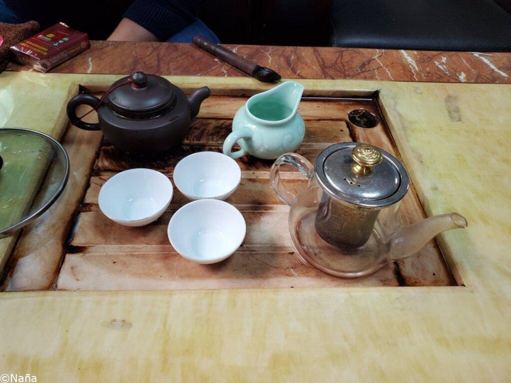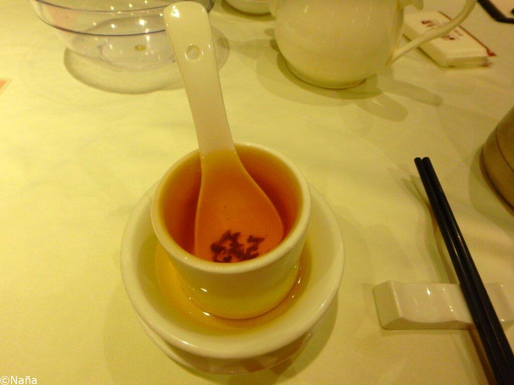 上海で飲茶を食べに行った時、ポットに自動でお湯が追加されて驚いたけど、このお茶のテーブルもお湯が自動で追加される仕組みだった。