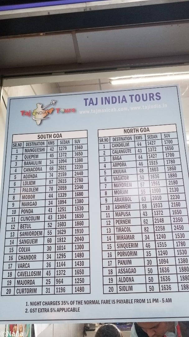タクシー 宿→パナジのバスターミナル 1300ルピー 約2350円 (2024/3月のレート)