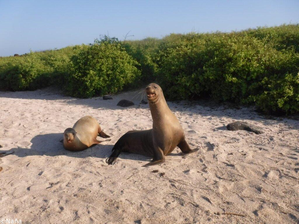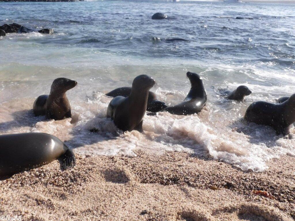 島のルールで動物たちとは2m距離を保たなくてはいけないのですが、アシカが人に向かって突然突進してきたりするので、逃げる。