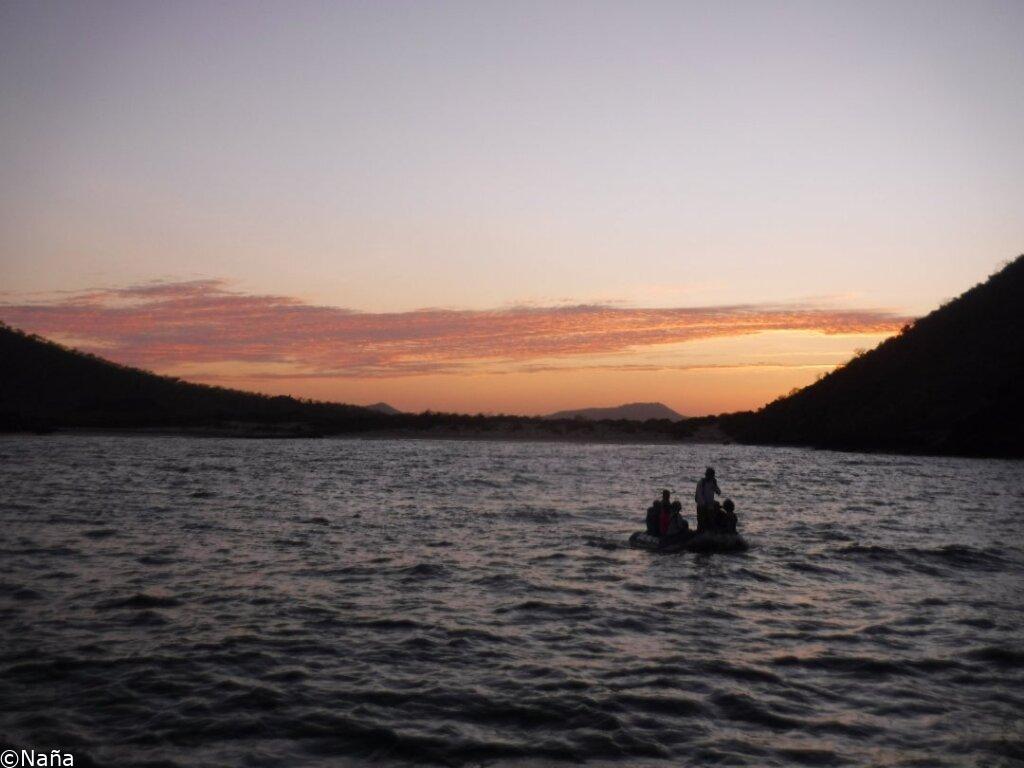 帰りは美しい夕焼けを見てボートに戻る。