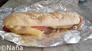 毎朝生ハムのボカディージョ。それと、カフェ コン レチェ(カフェオレ)。